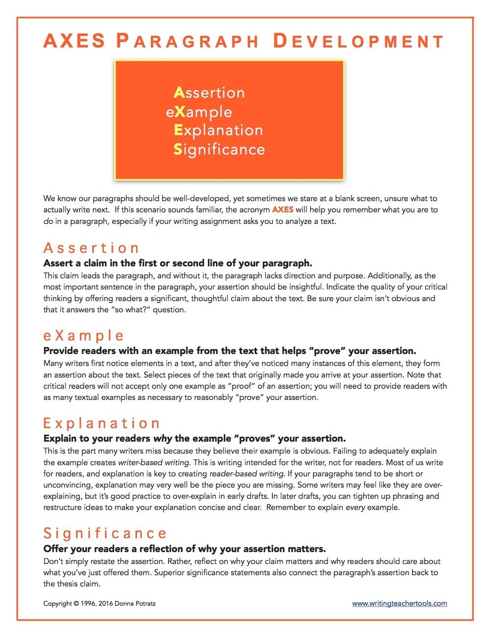 Help students write strong academic paragraphs with this essential tool! While AXES works best with textual analysis assignments, it can be used for any paragraph.
