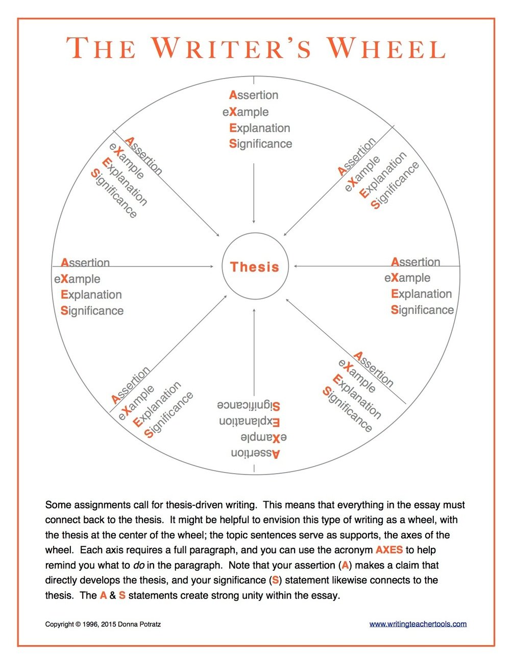 A visual representation of the components of an academic essay. This document is designed to work with AXES Paragraph Development.